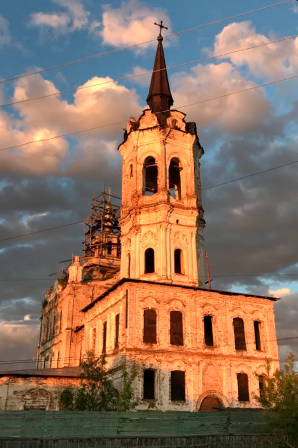Нижний теплый храм в честь Покрова Пресвятой Богородицы был освящен 14 сентября 1761 года, а верхний холодный в честь Воздвижения Креста Господня – 28 сентября 1771 года. Из-за нехватки денег колокольня долгие годы стояла деревянной и лишь в 1784 году была построена каменная.